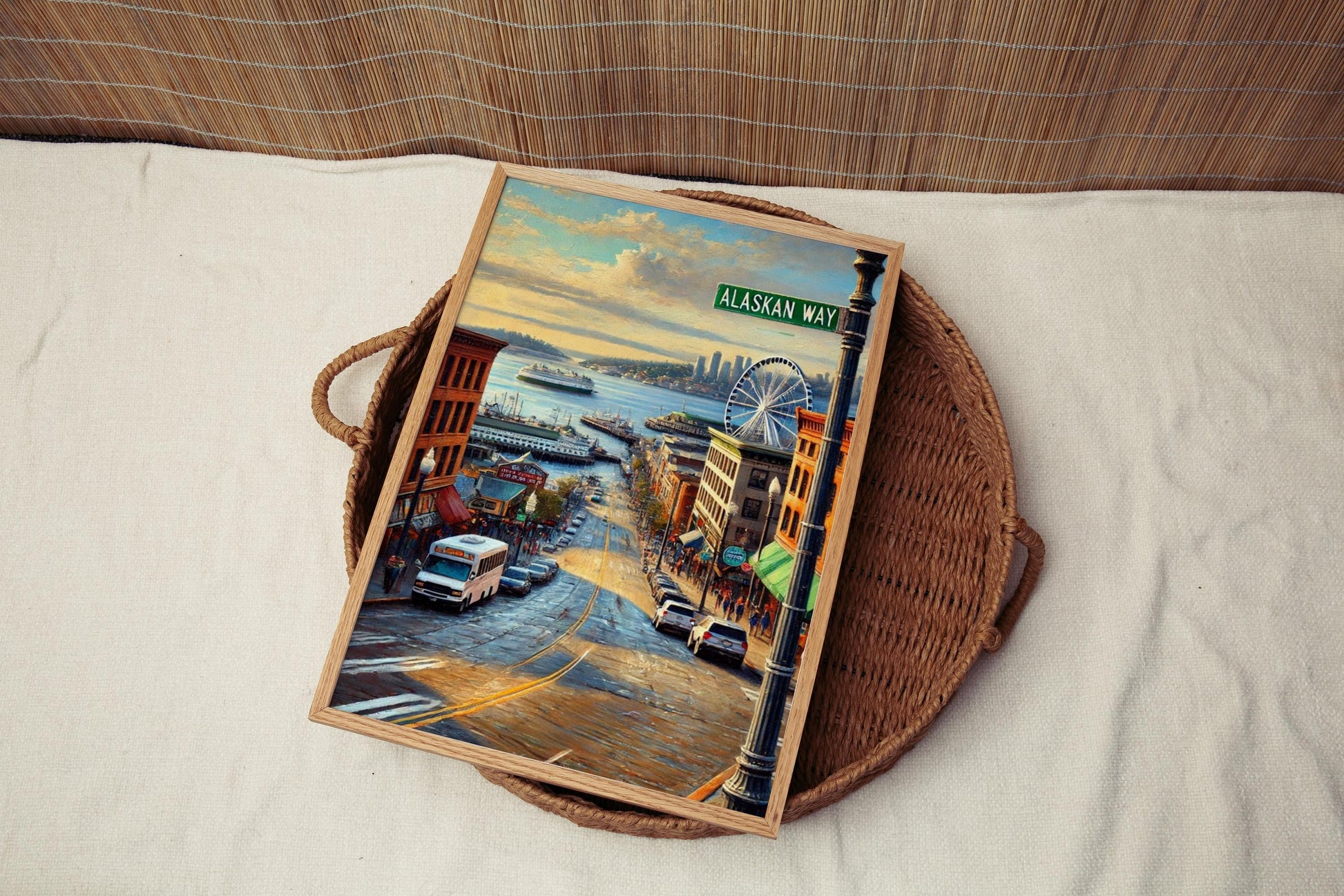 Alaskan Way Wall Art, Seattle Waterfront Print, Washington Cityscape, Travel Poster, Home Décor, Gift for Travelers, Street Sign Art