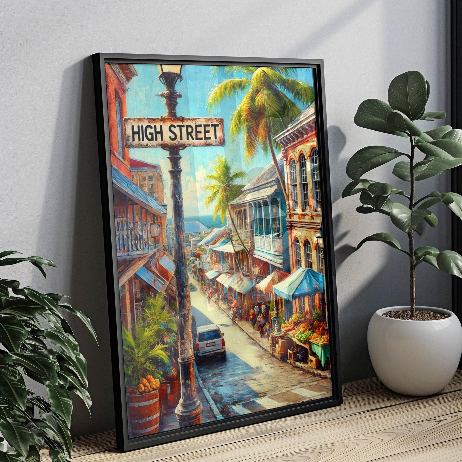 Antigua and Barbuda High Street Wall Art | St. John’s Print | Island Artwork | Travel Souvenir | Vibrant Cityscape Poster | Fine Art Print
