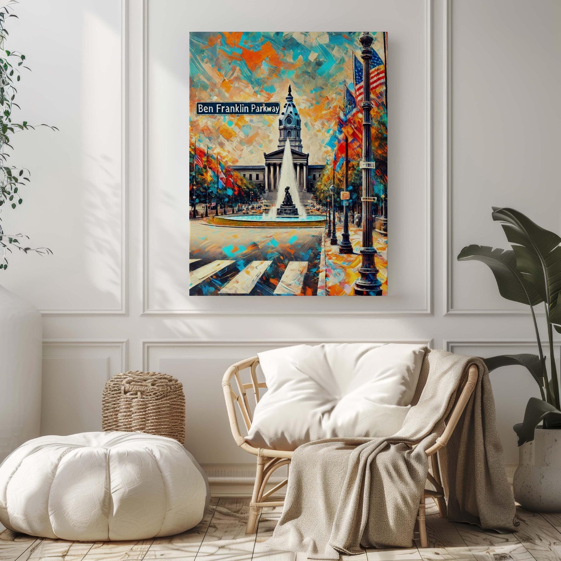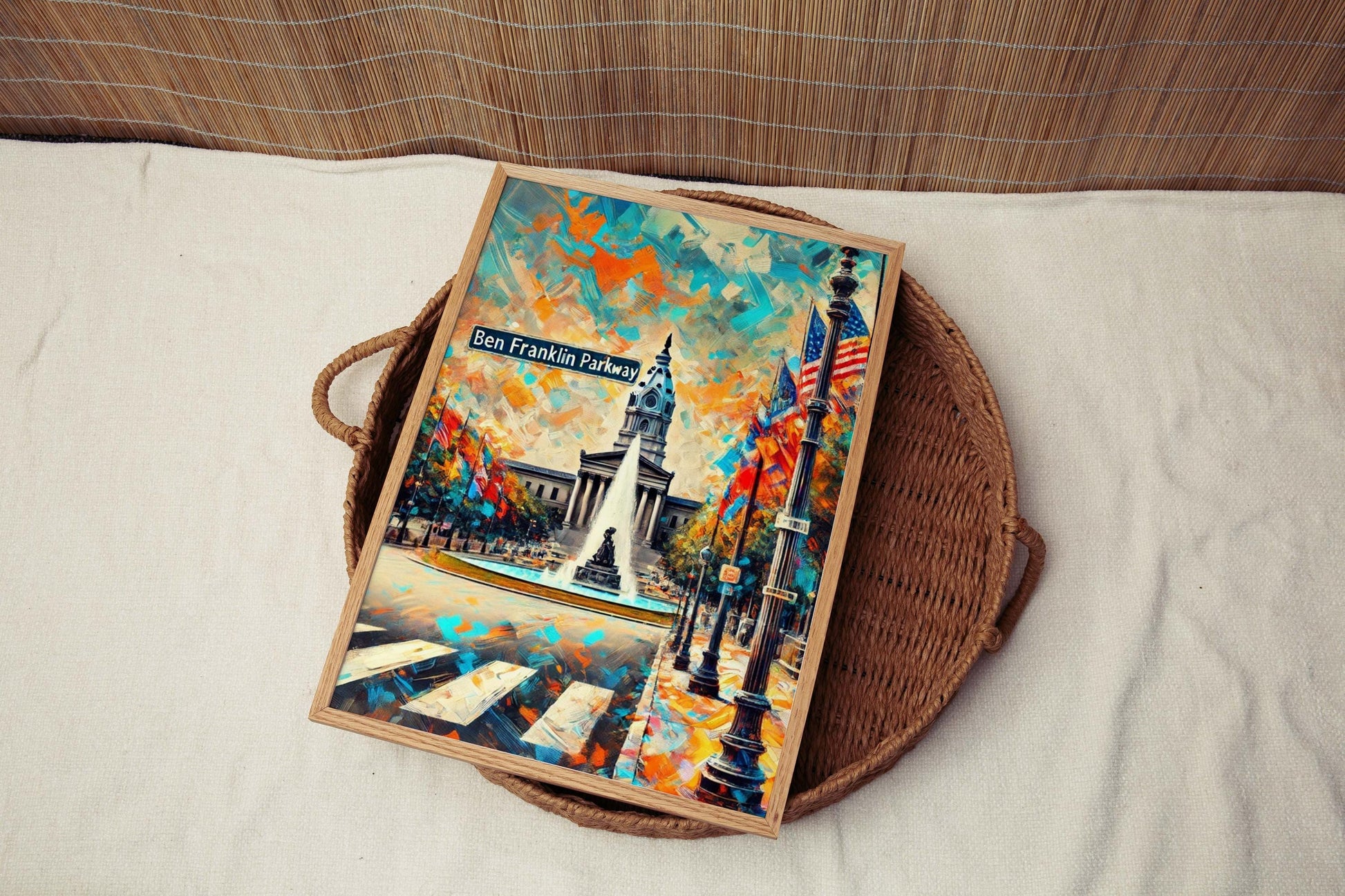 Benjamin Franklin Parkway Wall Art Print - Philadelphia Travel Poster, Cityscape Decor, Philly Gift, Urban Home Art & Housewarming Present