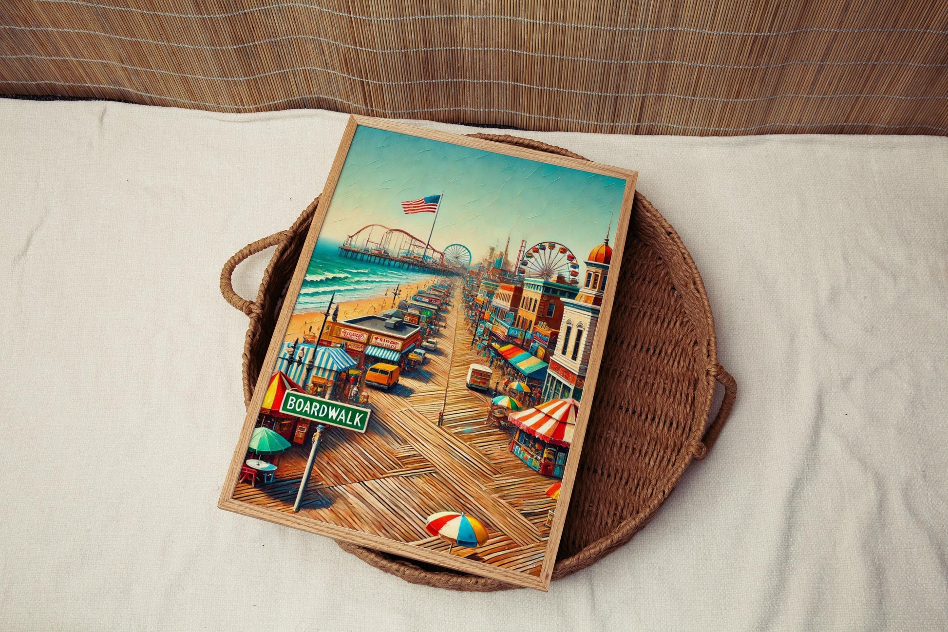 Boardwalk is beautifully captured in this vibrant wall art print, reflecting the lively energy, ocean views, and timeless appeal of Atlantic City’s most famous stretch.