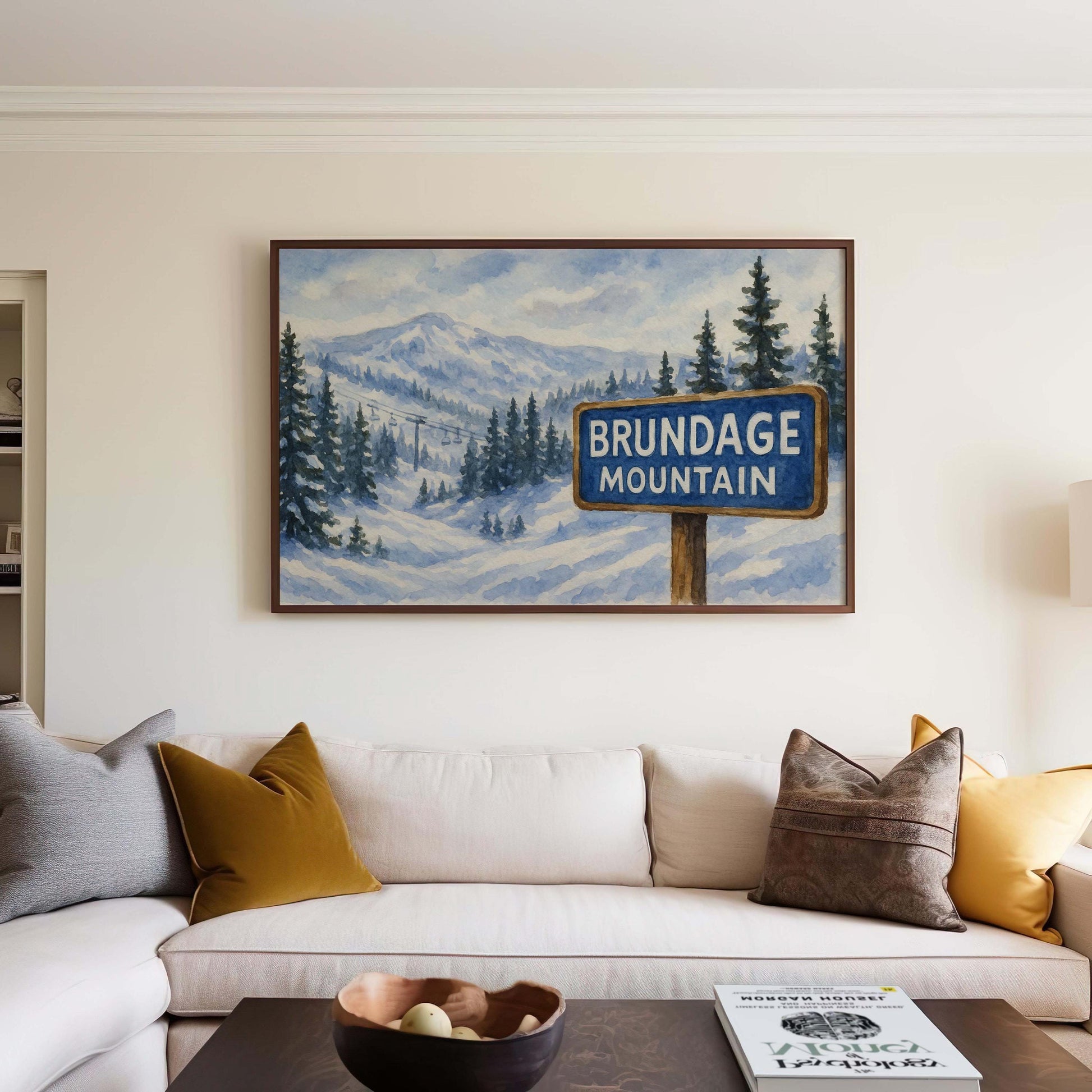 Crafted with high-quality materials, this snow wall art is ideal for showcasing in your living room, ski cabin, or office. Its vibrant winter scene highlights the majestic snow-covered peaks and lush pine trees that make Brundage Mountain a favorite ski resort map among winter sports enthusiasts.
