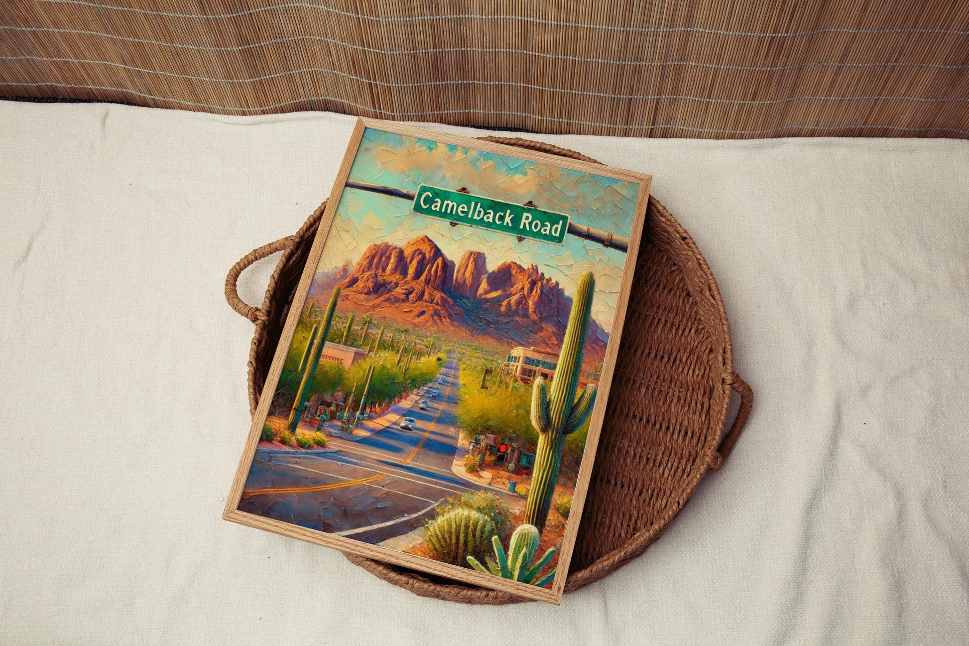 Camelback Road Wall Art, Arizona Street Sign Print, Phoenix Landscape Decor, Desert Cacti Scene, Travel Souvenir, Modern City Scene, Gift
