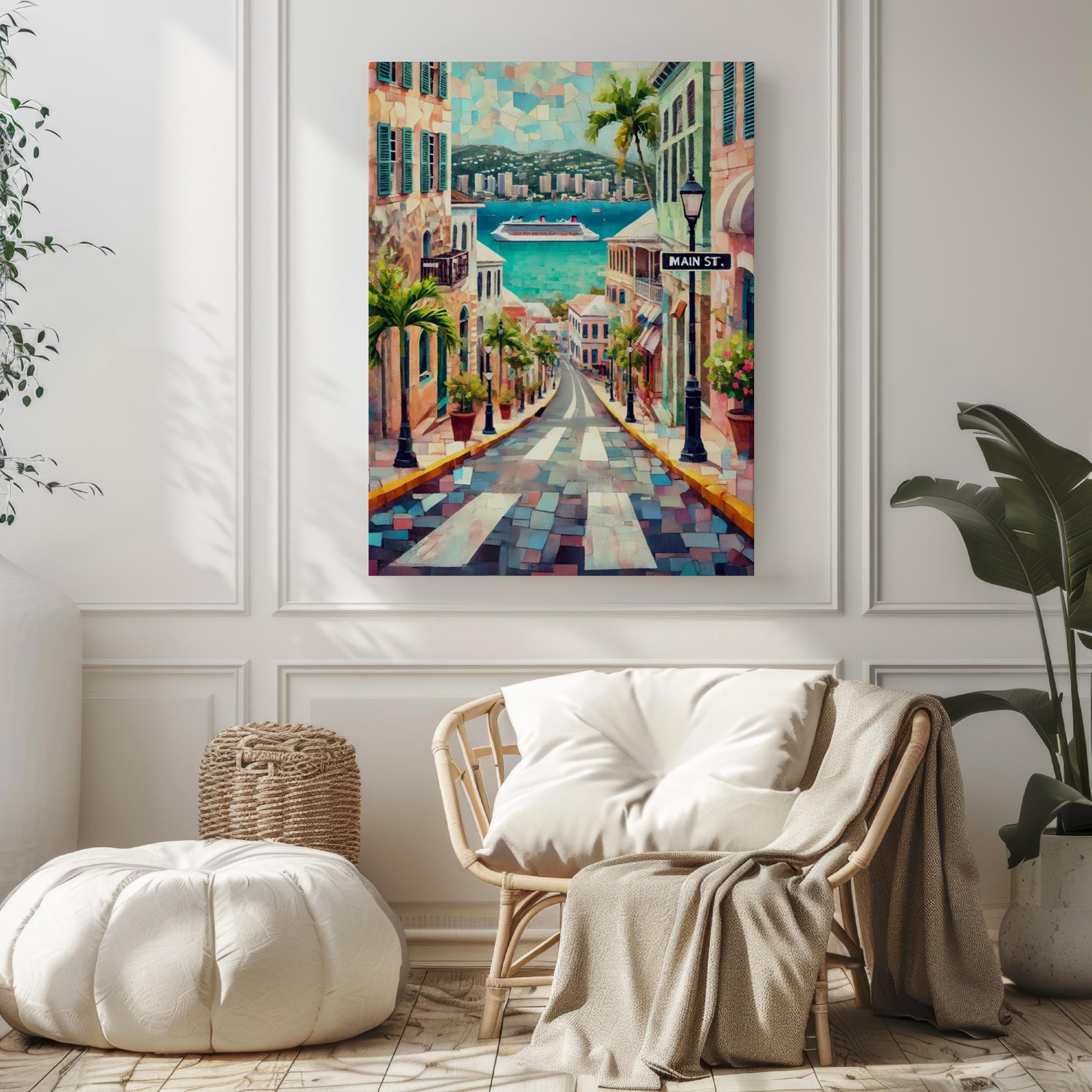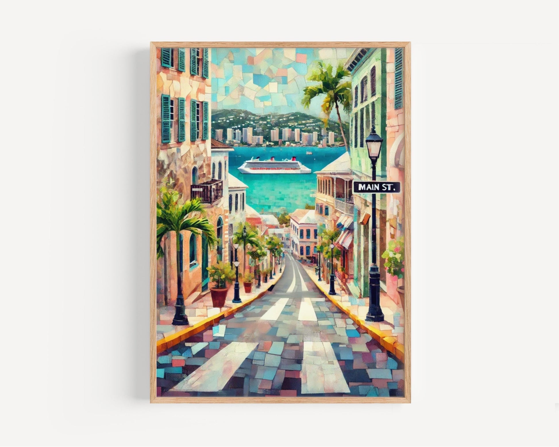 Caribbean Main St Wall Art - St Thomas Travel Print, Housewarming Gift, Caribbean Souvenir Poster, Tropical Island Decor