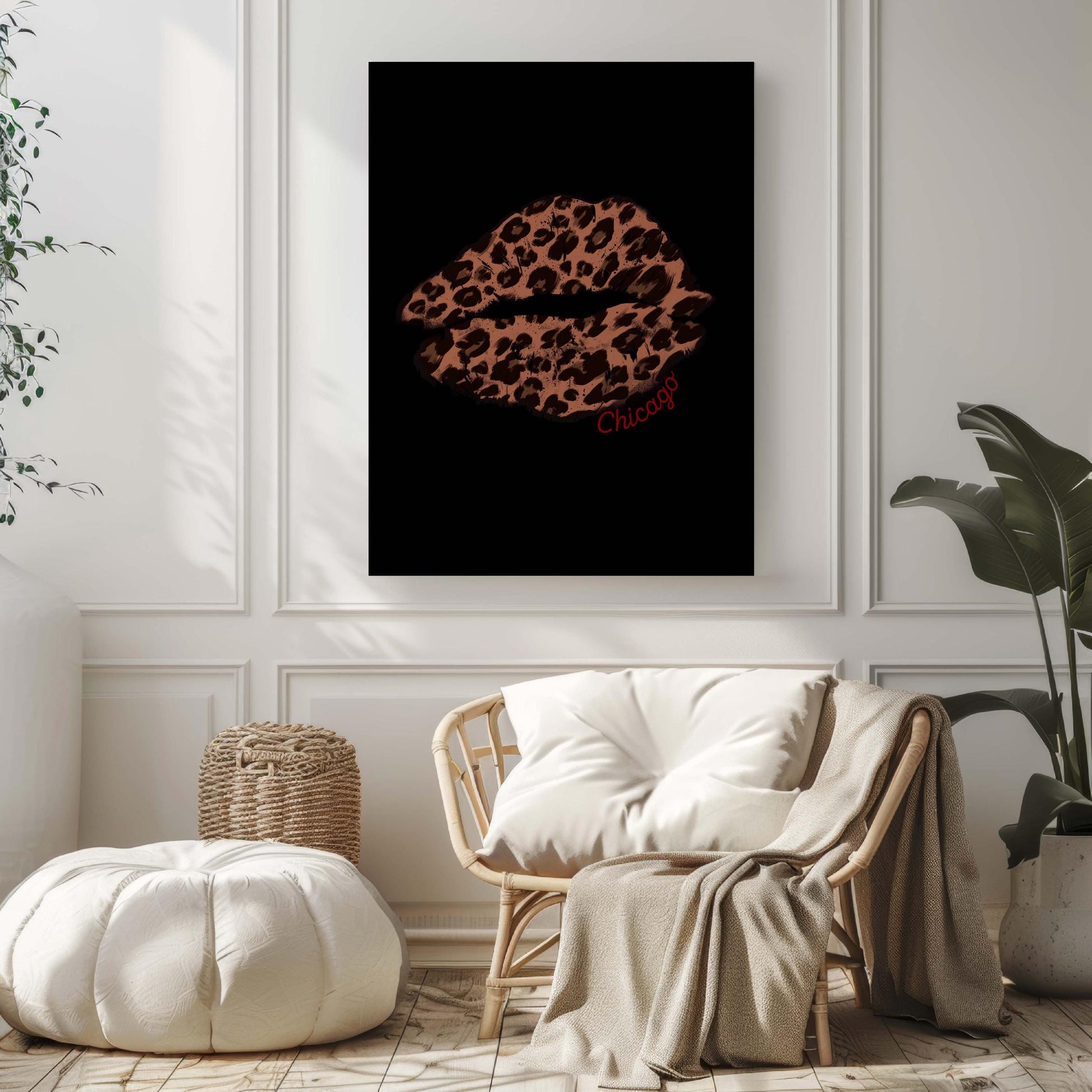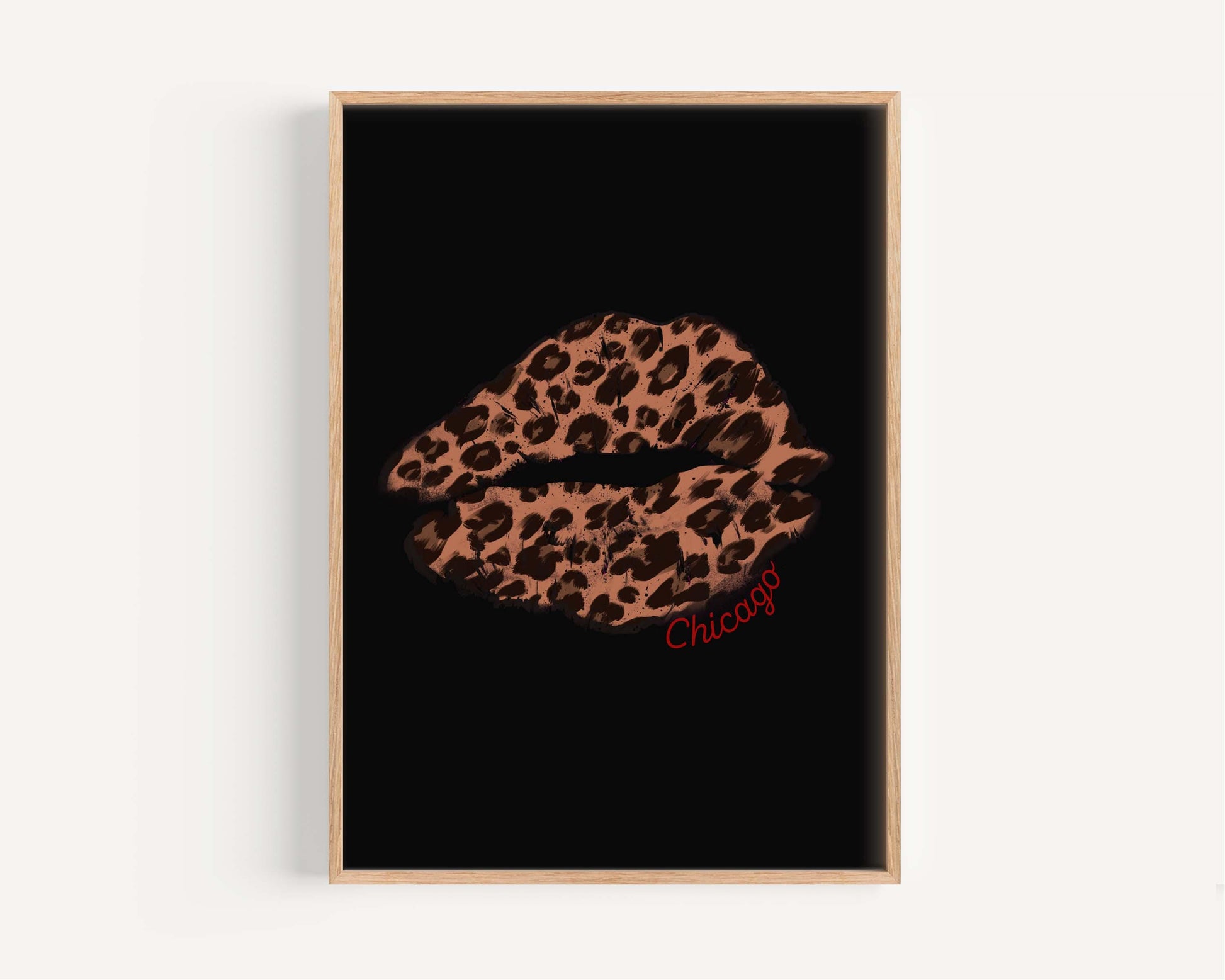 Chicago Lips Artwork | Dorm Wall Decor | Leopard Print Lips Illustration | Modern Art Print for Bedroom or Living Room