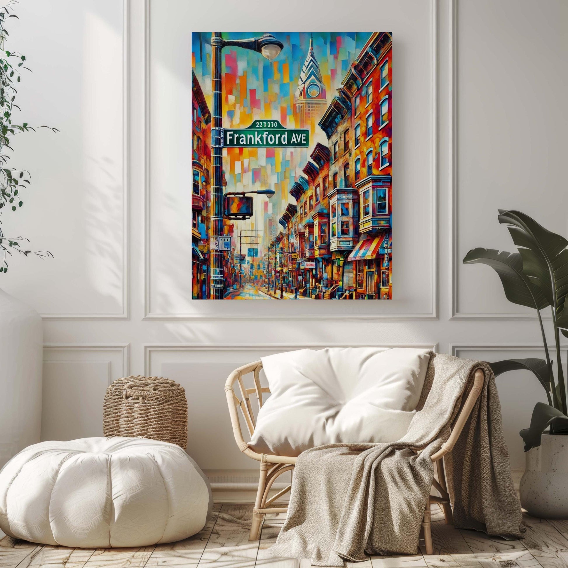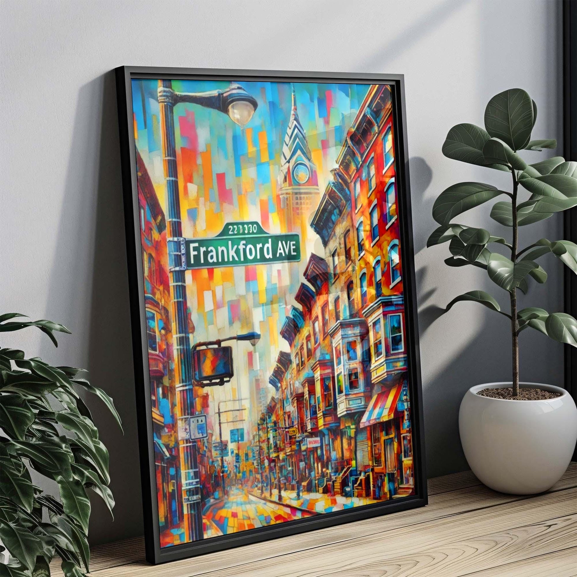 Capture the vibrant spirit of Philly with this Frankford Ave Print, showcasing the iconic architecture and lively street scene of Frankford Avenue as