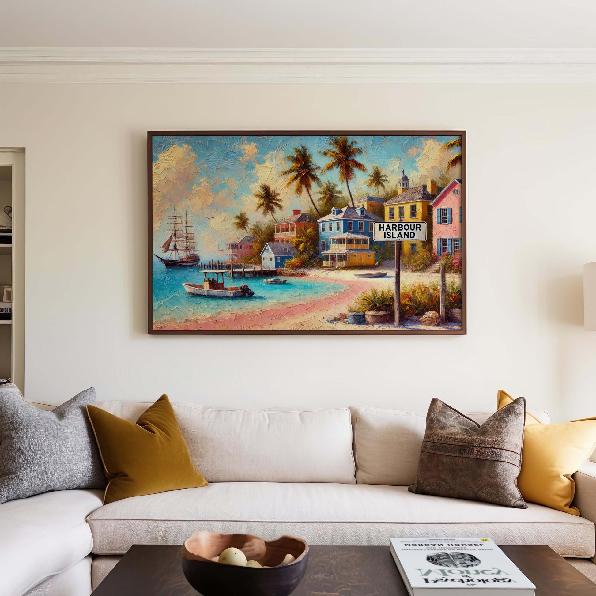 Made with high-quality materials, this tropical print showcases the idyllic landscape of Harbour Island, highlighting its iconic pink sands, lush palm trees, and colorful island homes. It’s an ideal gift for lovers of ocean travel, beach decor, or anyone dreaming of a Caribbean getaway. Bring a touch of tropical paradise to your living room, bedroom, or office with this coastal decor that inspires relaxation and wanderlust.