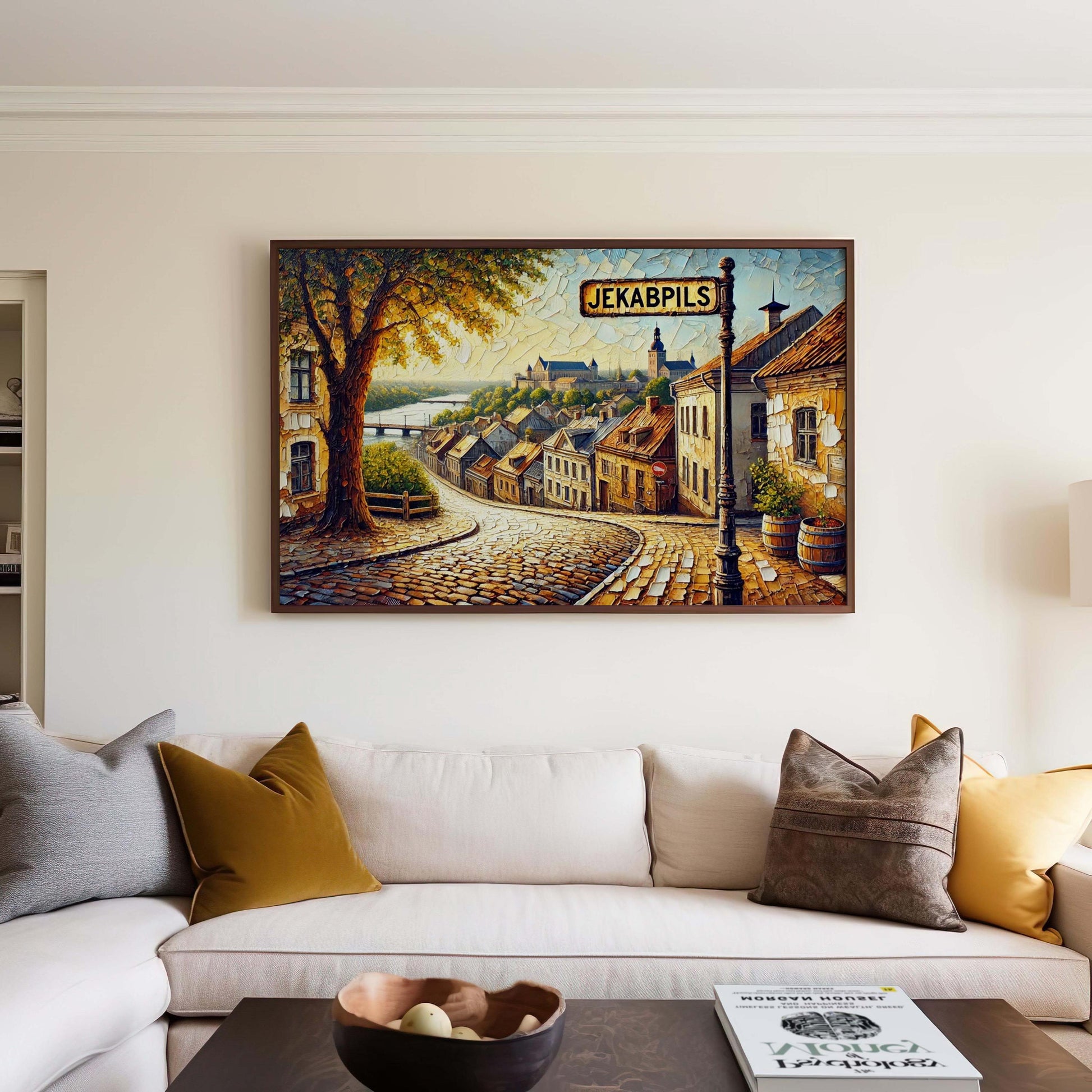 Celebrate the charm of Latvia with this beautiful Jekabpils Latvia Wall Art, a stunning piece of Baltic decor that captures the essence of Latvian folk art and heritage. Perfect as a travel souvenir or a unique Baltic gift, this handcrafted artwork brings the picturesque scene of Jekabpils directly into your home.