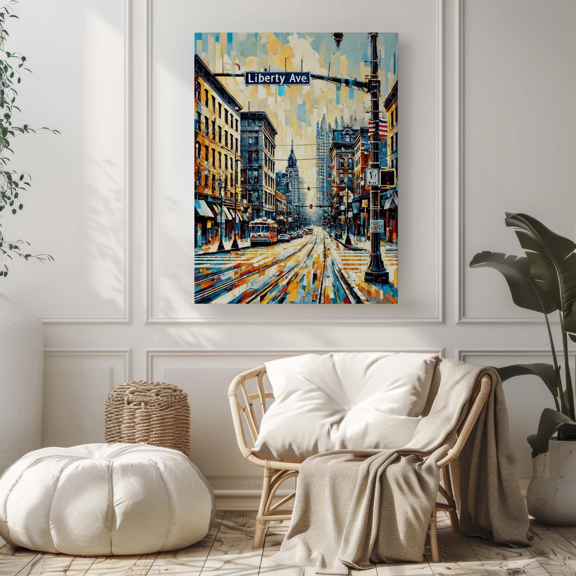 **Liberty Avenue Wall Art** – Bring the vibrant energy of Pittsburgh to your space with this Liberty Avenue wall art print, showcasing one of the city's most iconic thoroughfares. Known for its dynamic blend of culture, nightlife, and downtown life, this print is a must-have for locals, visitors, or anyone who loves the spirit of the Steel City.