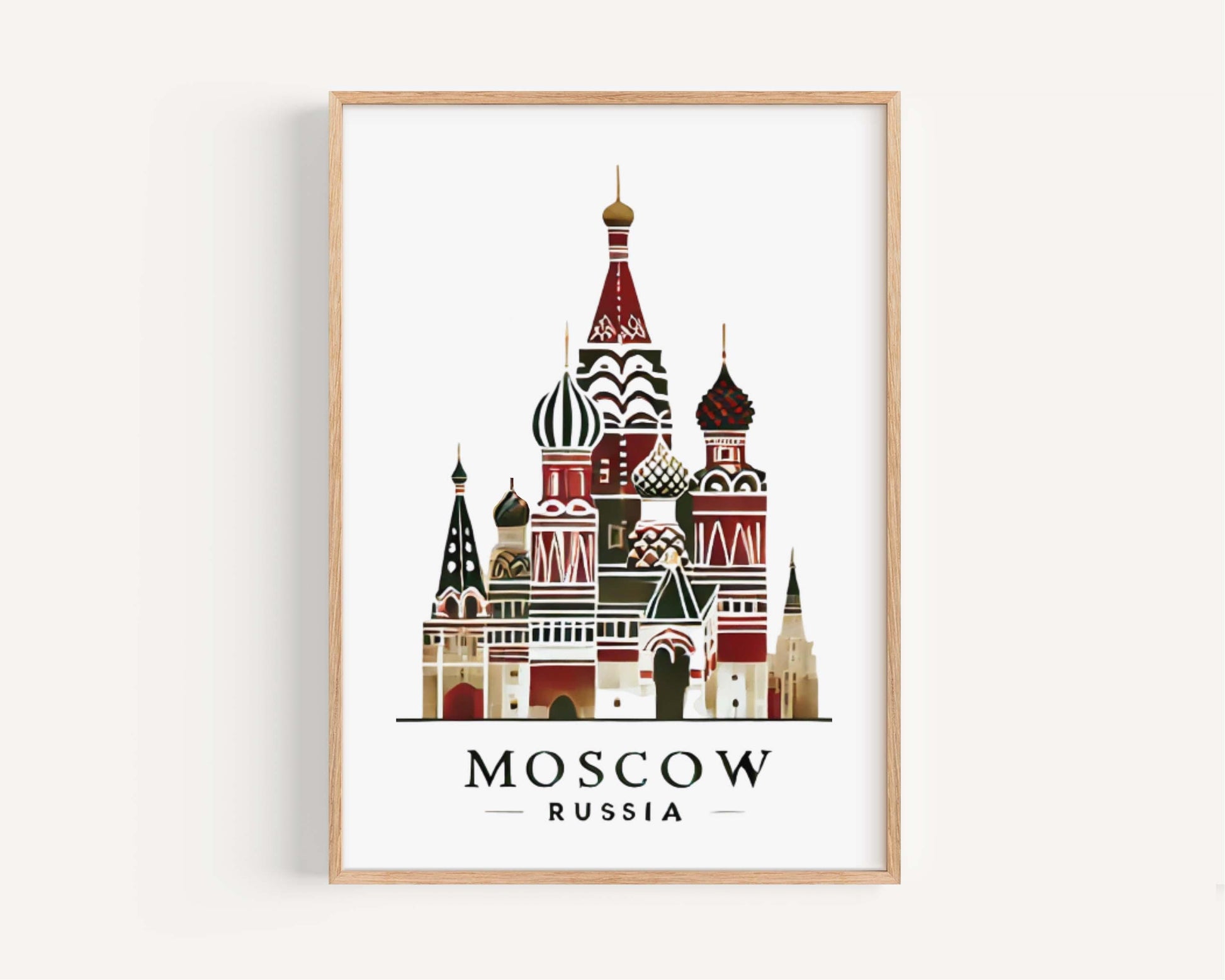 Moscow – Capture the unique charm of Moscow with this stunning wall art print, perfect for home décor, housewarming gifts, or anyone who loves the rich history and vibrant culture of Russia’s capital. This vibrant print showcases iconic landmarks like the colorful domes of Saint Basil’s Cathedral, bringing bold and historic elegance to any space.
