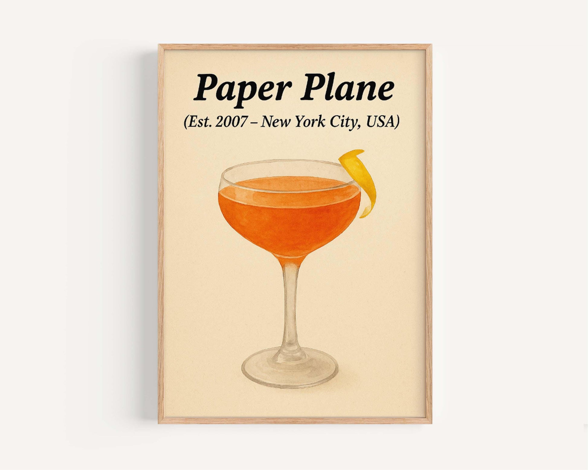 Elevate your bar decor with this stunning Paper Plane Cocktail Artwork, a modern wall art print that perfectly captures the fun and sophistication of your favorite drink. Whether you're a bartender, cocktail enthusiast, or looking for a unique gift for a beverage lover, this digital download features a beautifully illustrated paper plane cocktail with vibrant colors and stylish typography.