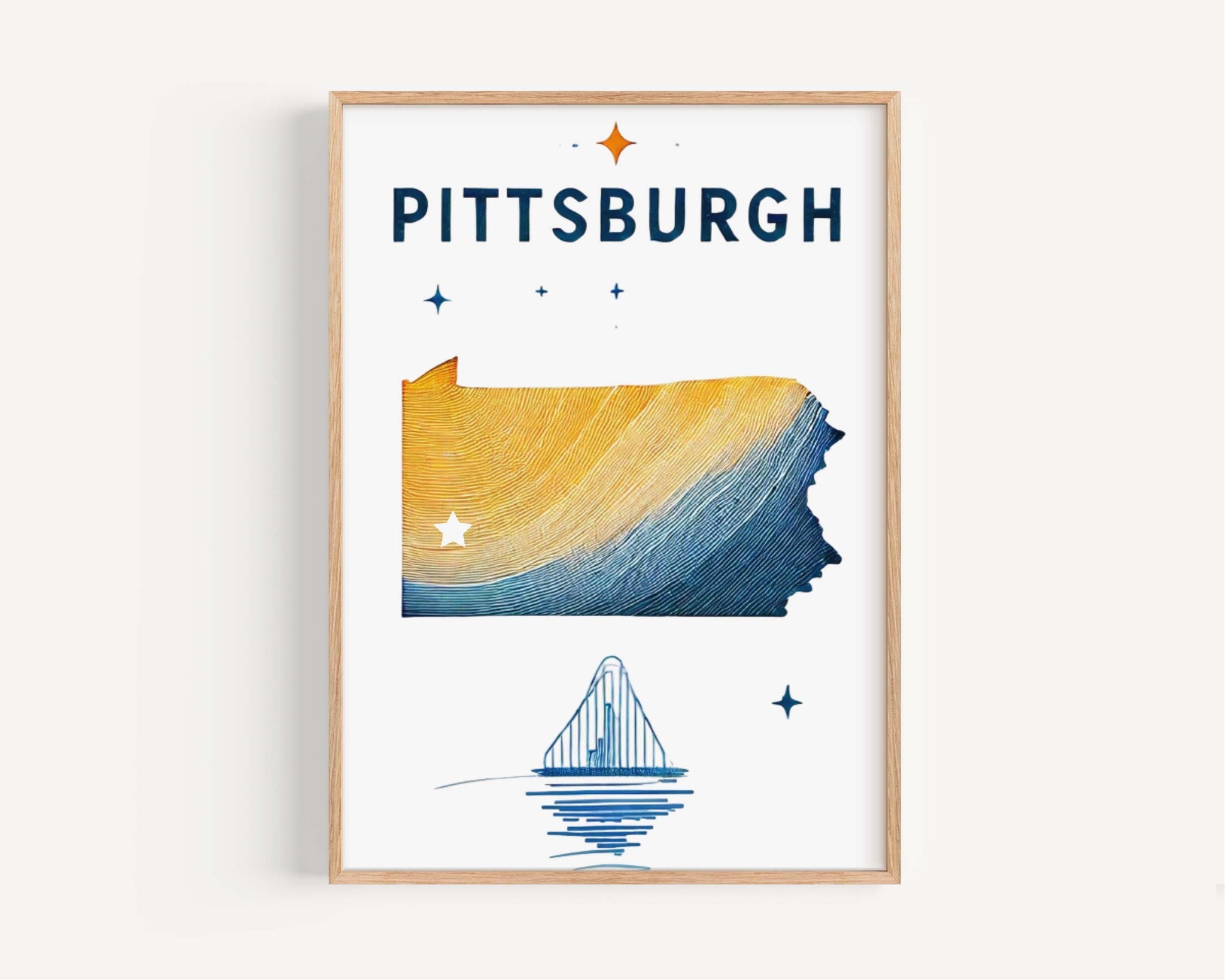 Pittsburg Print Pennsylvania Wall Art, Travel Home Decor, College Room Gift, Housewarming PA Poster, Pittsburgh City Skyline Illustration