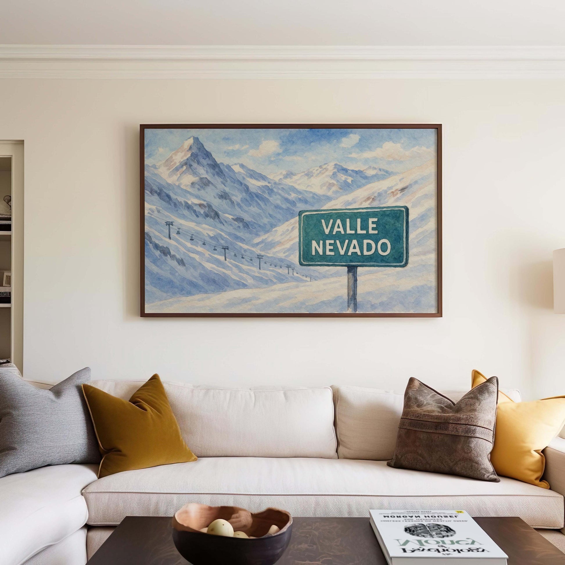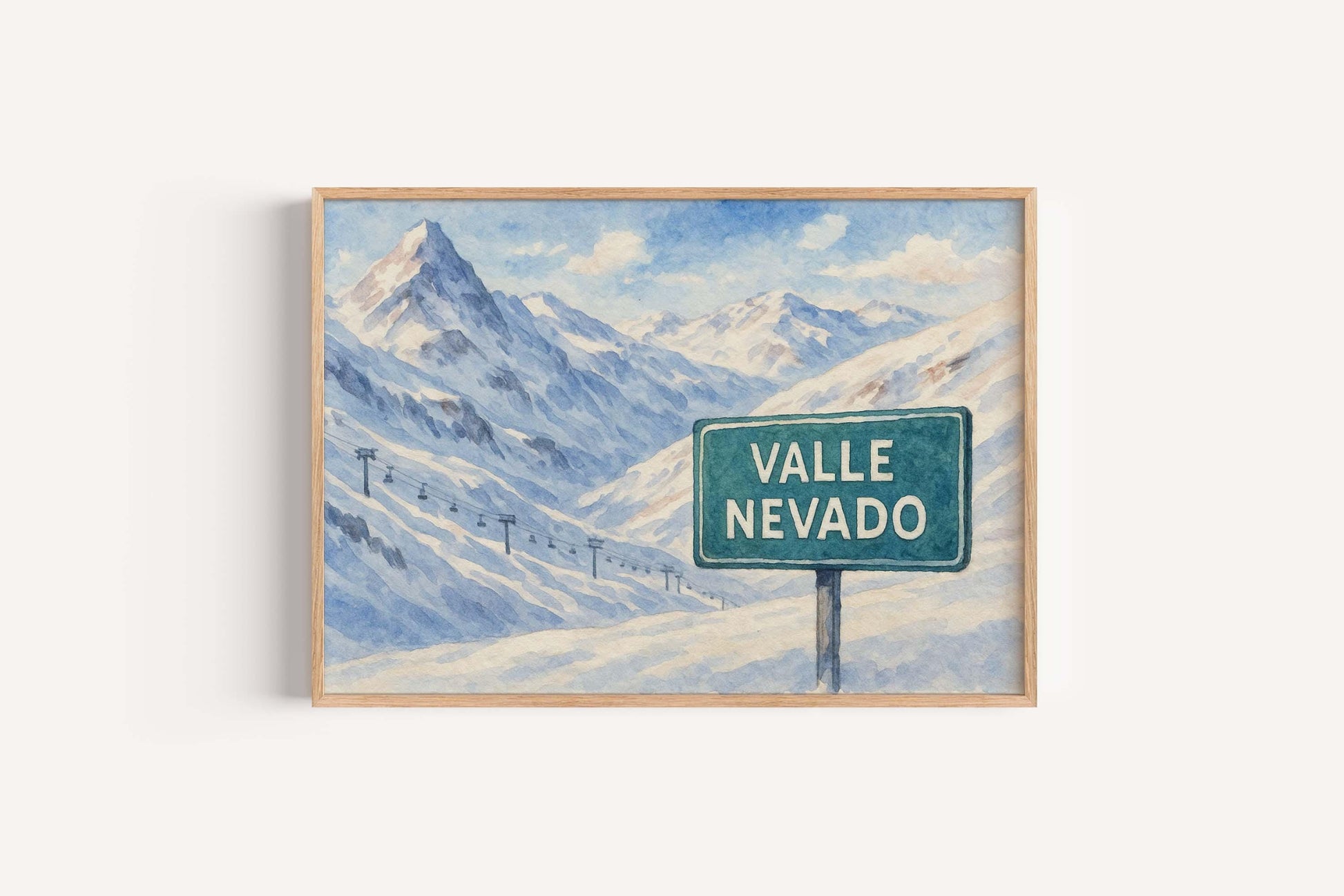 Crafted with vibrant, high-quality prints, this mountain art poster showcases the iconic Valle Nevado ski resort, featuring detailed depictions of ski slopes, chairlifts, and snow-covered peaks. Whether you're decorating your living room, ski cabin, or office, this winter landscape adds a touch of alpine charm and adventure to any space.
